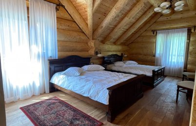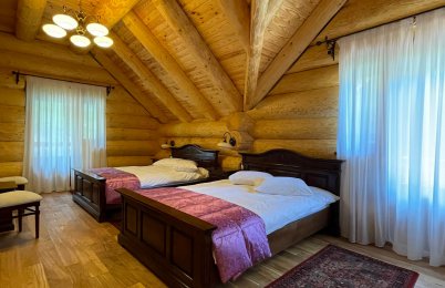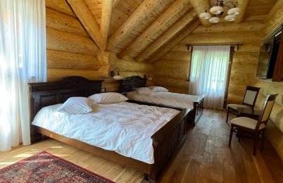 Cabana este construită din bușteni de lemn necalibrați, la cel mai înalt standard de frumusețe și eleganță și pune la dispoziție: